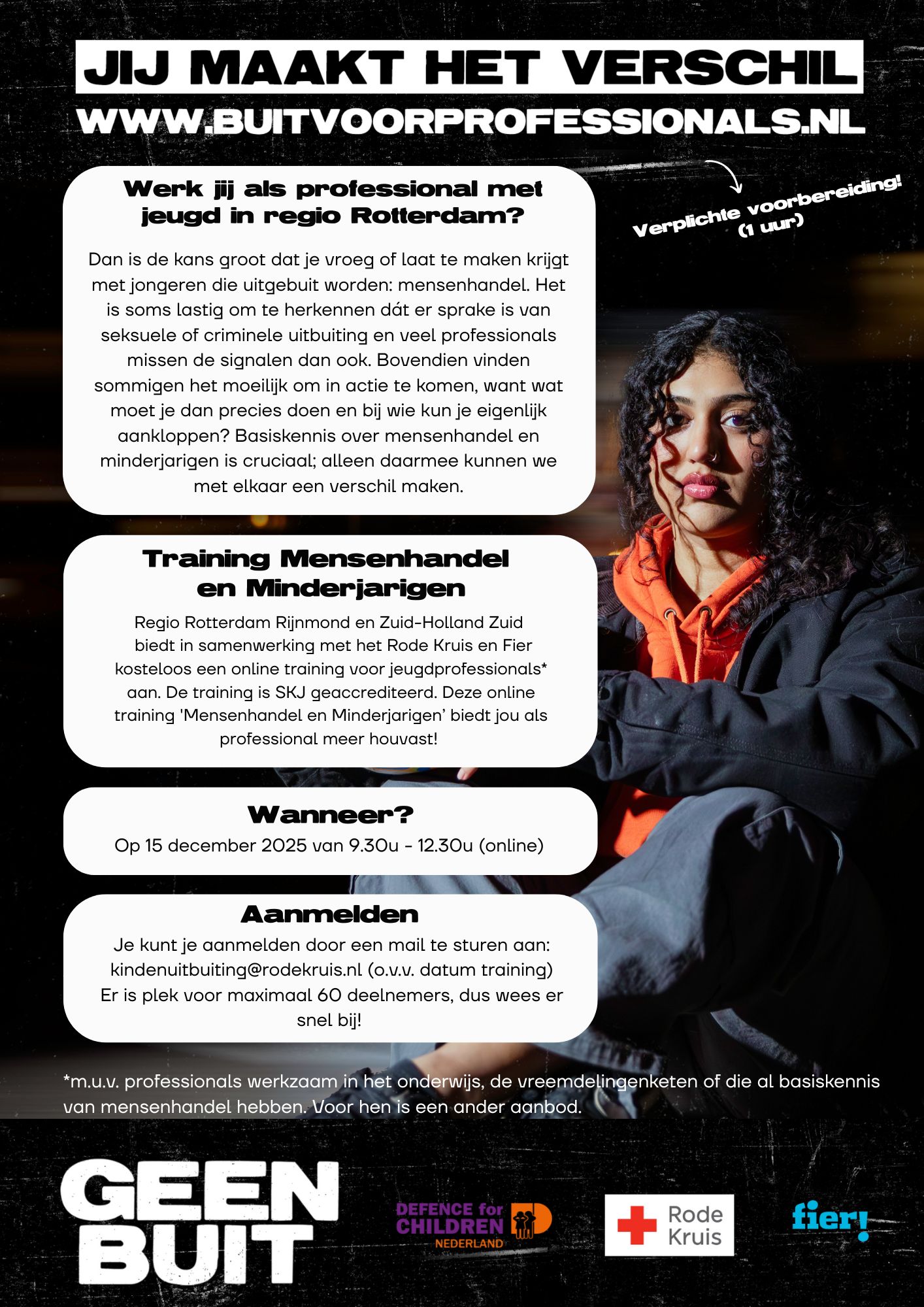 Werk jij met jongeren in regio Rotterdam? De kans is groot dat je te maken kunt krijgen met signalen van uitbuiting. Maar hoe herken je het? En wat moet je dan doen?